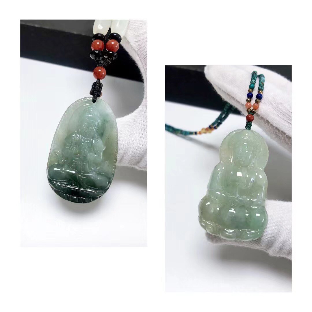 高冰种飘绿老翠玉山水财神吊牌玉佩项链缅甸老翡翠冰透毛衣链百搭