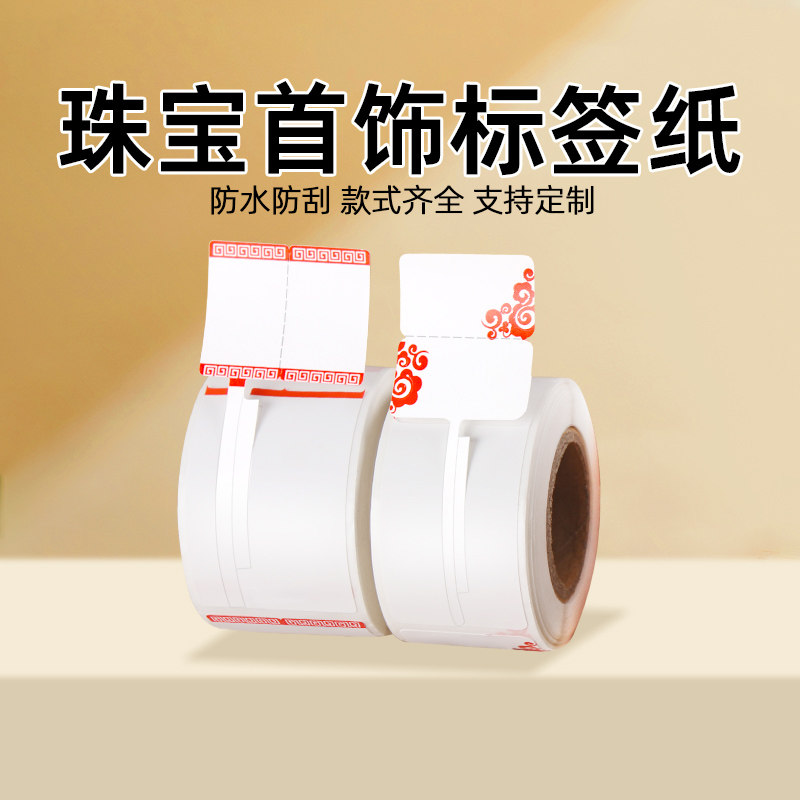 安杰优珠宝标签纸吊牌定制价格标签打印纸首饰眼镜翡翠玉器戒指手链贴纸热敏合成纸不干胶防撕毁可定制
