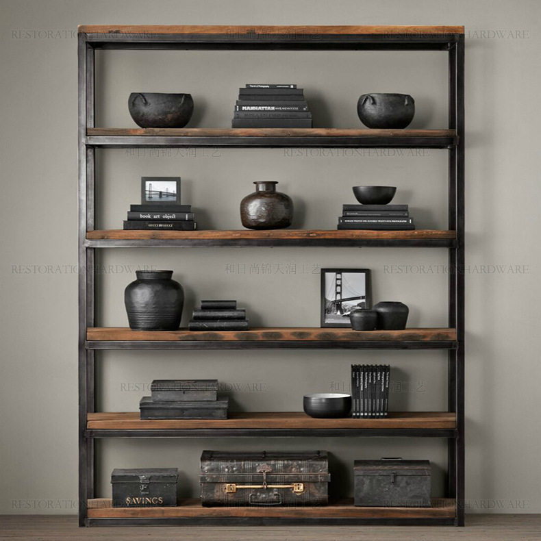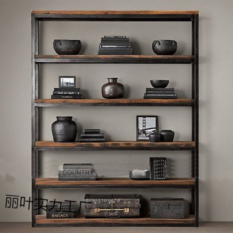 2026loft厨房铁艺置物架实木书架书柜陈列架北欧架多层复古工业风