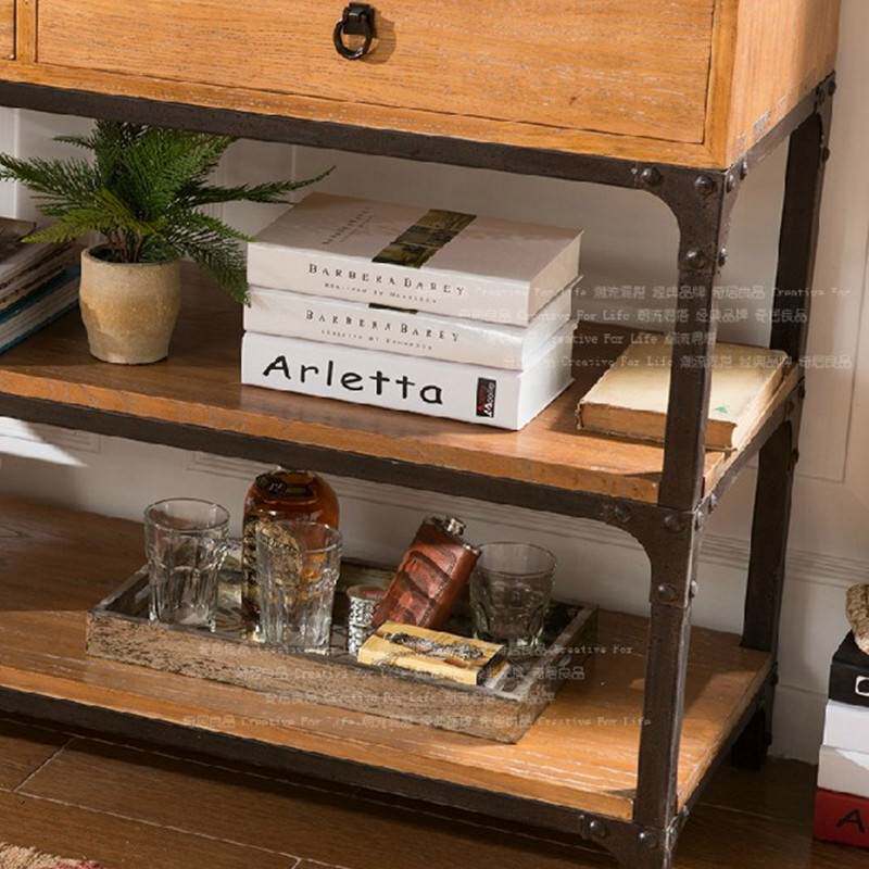美式loft复古实木铁艺书柜书架带抽屉置物架玄关柜玄关桌收纳架子