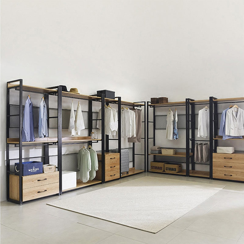 北欧铁艺实木挂衣架衣柜衣橱loft置物架落地卧室开放式金属衣帽间