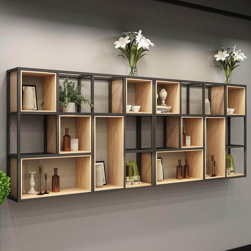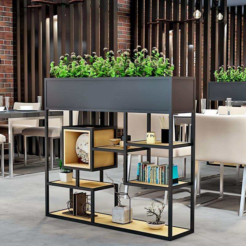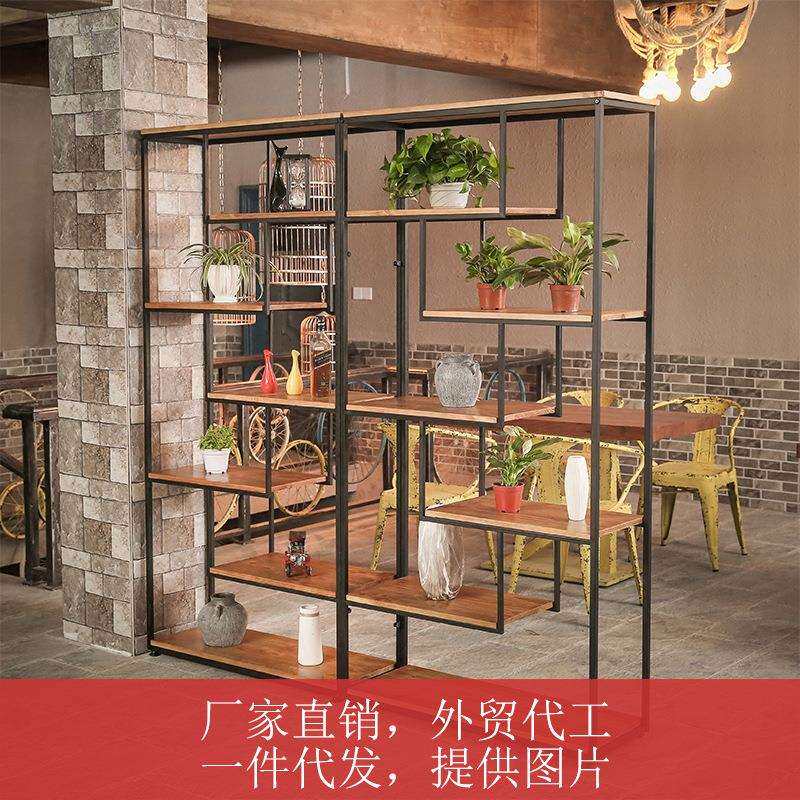 LOFT铁艺隔断置物架简易实木隔板花架餐厅咖啡厅办公室复古矮花架