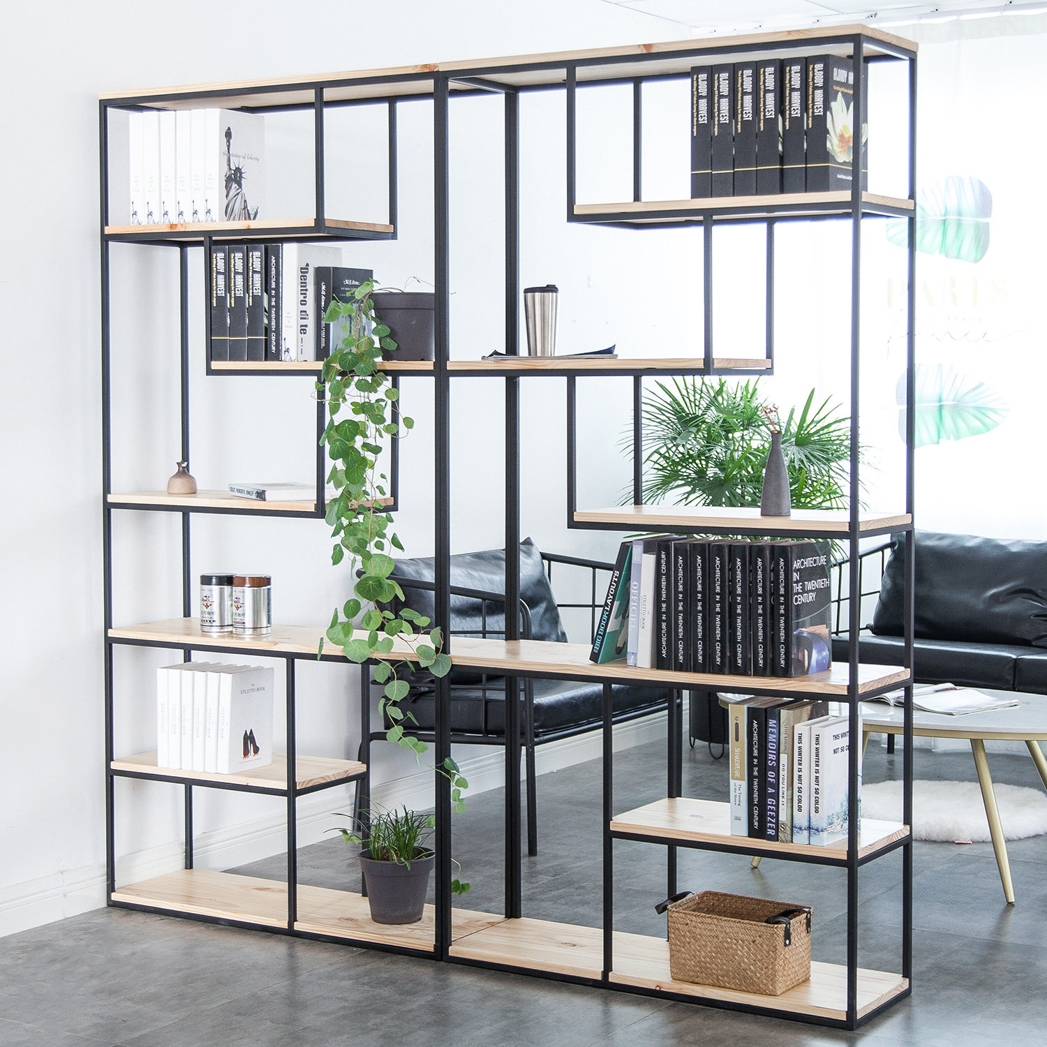 铁艺办公室隔断置物架工业风书架客厅玄关架饰品陈列架loft储物架