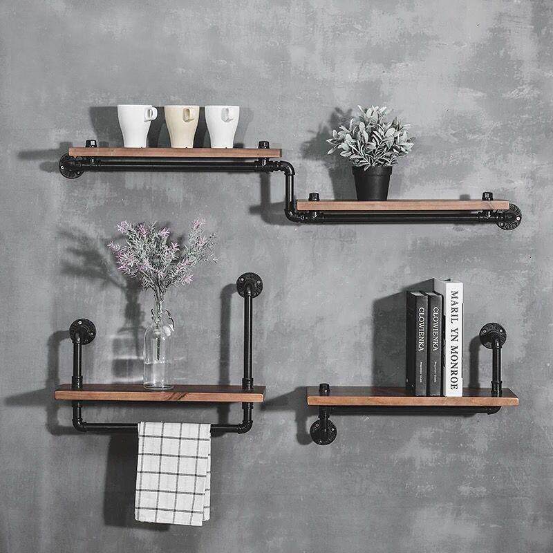 loft复古工业风水管墙上置物架实木铁艺书架客厅壁挂一字搁板装饰