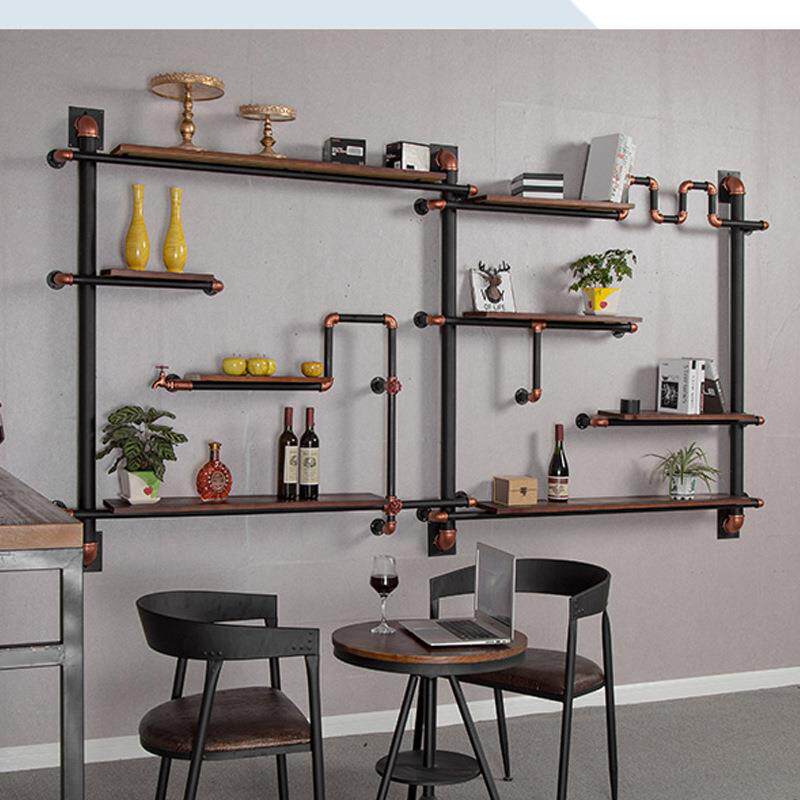loft工业风墙面置物架吧台背景装饰架复古创意展示架水管壁挂书架