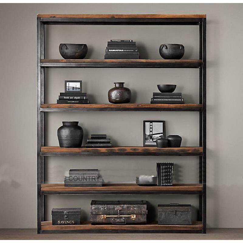 loft美式实木简约书柜陈列架厨房隔板多层置物架复古收纳铁艺书架