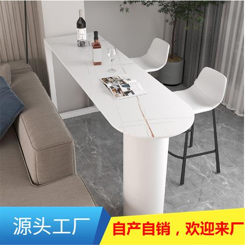北欧轻奢吧台桌 家用客厅靠墙隔断餐桌 阳台休闲岩板高脚桌椅组合