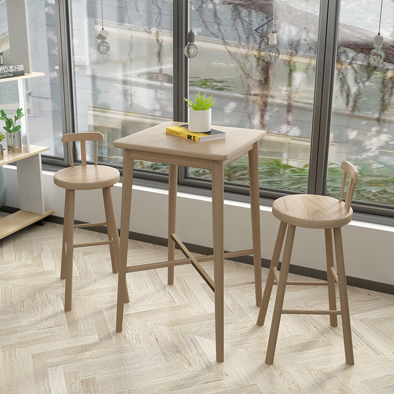 北欧实木方形吧台桌 家用阳台高脚桌 奶茶咖啡厅休闲咖啡桌椅组合