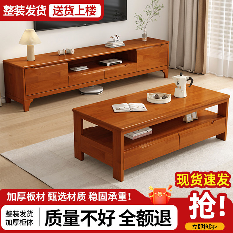 电视机柜2025新款客厅家用茶几组合小户型收纳储物实木落地柜卧室