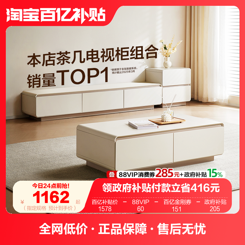 政府补贴全友家居奶油风茶几电视机柜组合2025新款客厅家用收纳柜