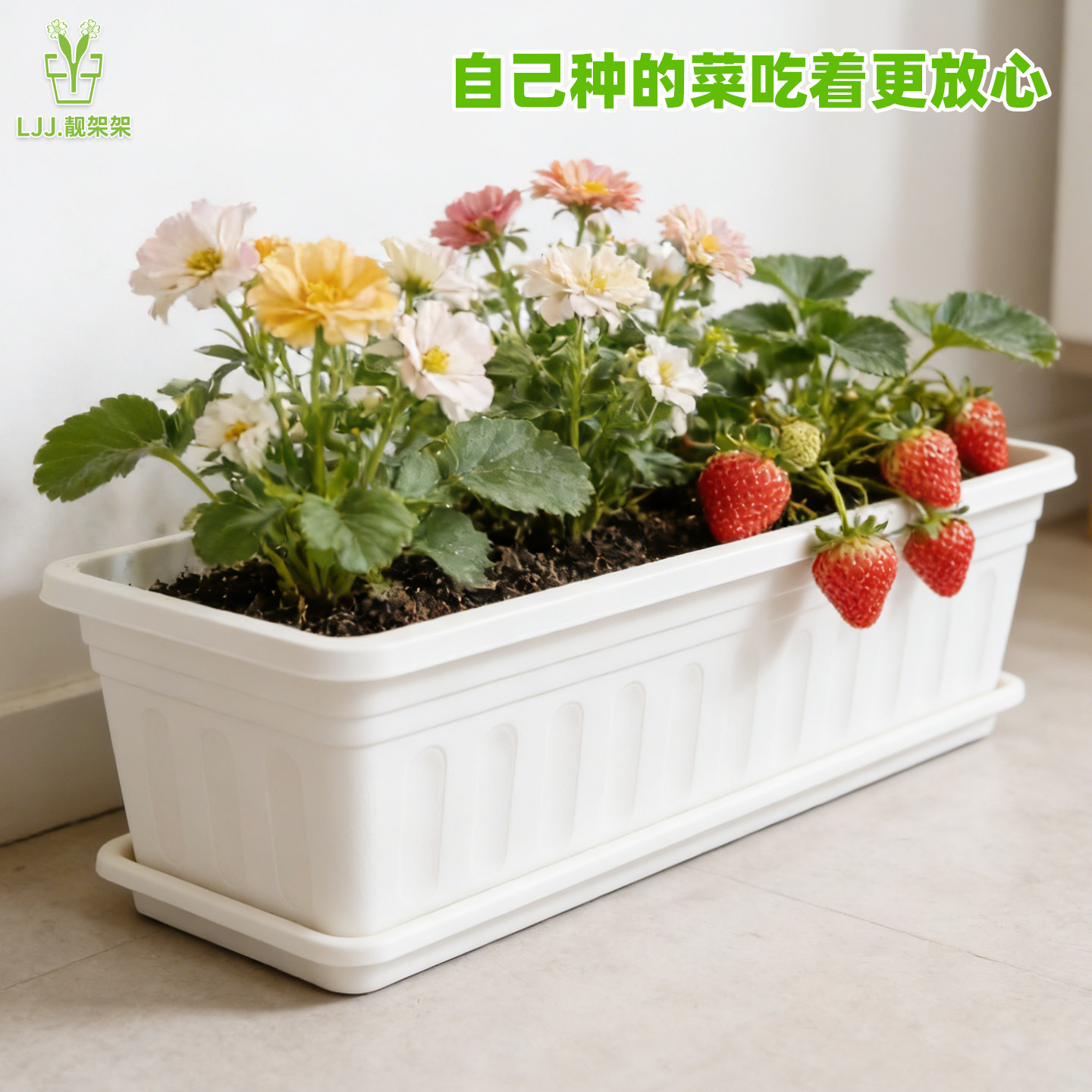 阳台种菜盆种菜专用盆草莓盆栽长方形蔬菜种植盆户外塑料花盆加厚