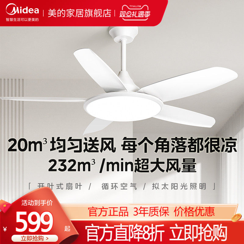 政府补贴15% 美的照明客厅吊灯简约2025年新款风扇灯吊扇灯餐厅灯