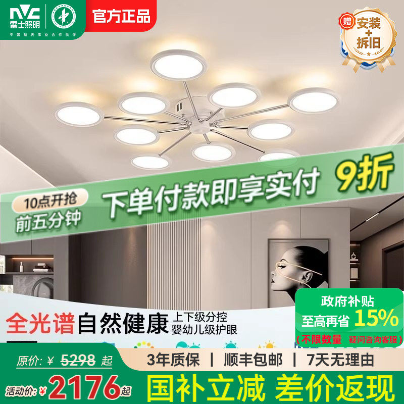 雷士照明枕边风云境隐形风扇灯客厅吊灯简约卧室餐厅主灯全屋套餐