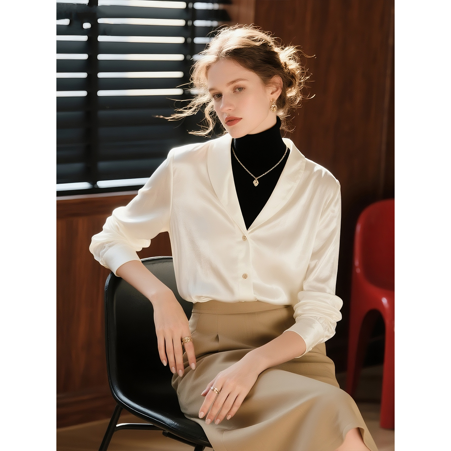 - 真丝衬衫女长袖重磅桑蚕丝上衣