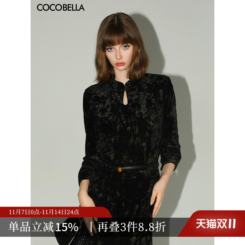 预售COCOBELLA2025新款V领女人味丝绒衬衫女25秋冬通勤衬衣SR0010