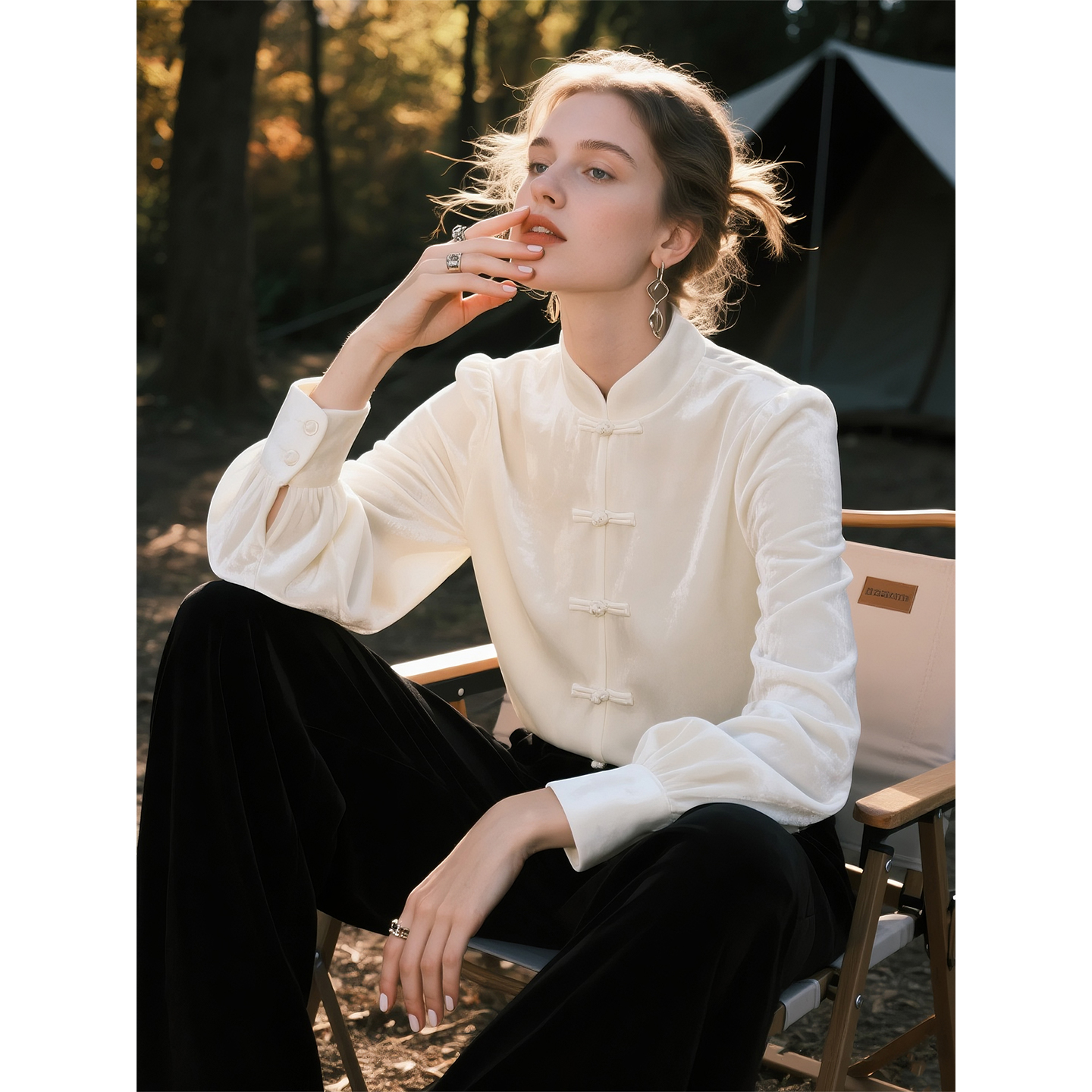 白色丝绒衬衫女2025秋冬新款新中式盘扣长袖衬衣高级气质百搭上衣