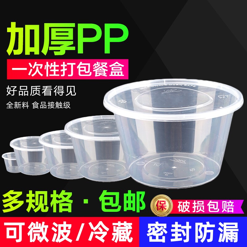 打包盒一次性餐盒商用外卖快餐带盖食品级塑料汤粉面盒子圆形饭盒