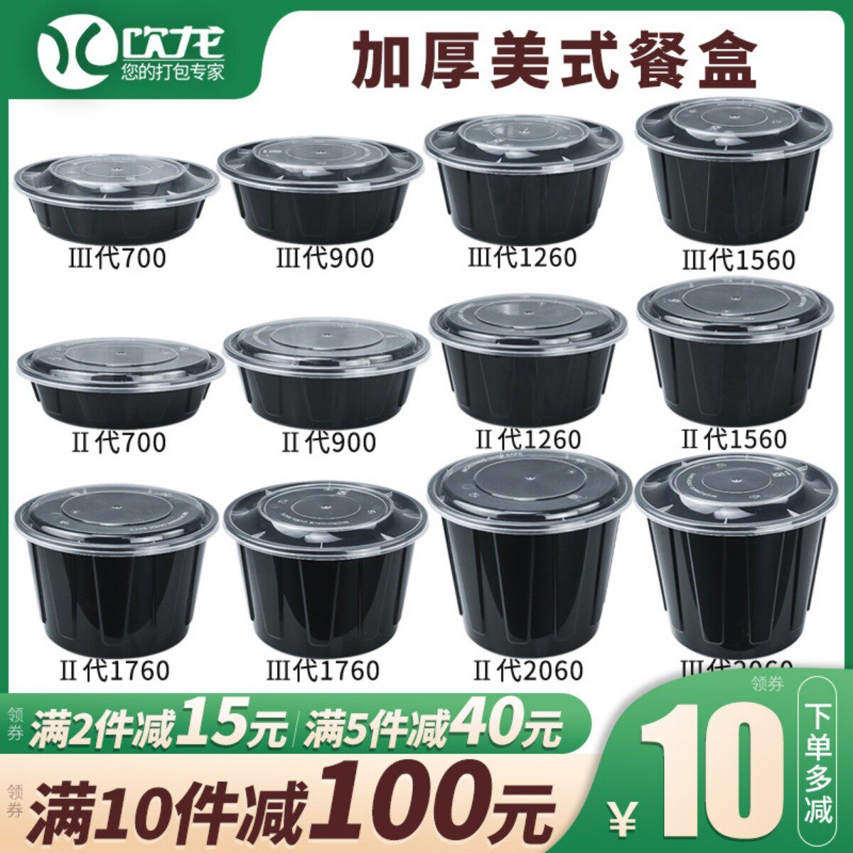美式圆形900ml一次性餐盒长方形打包盒750ml黑色外卖快餐饭盒汤碗