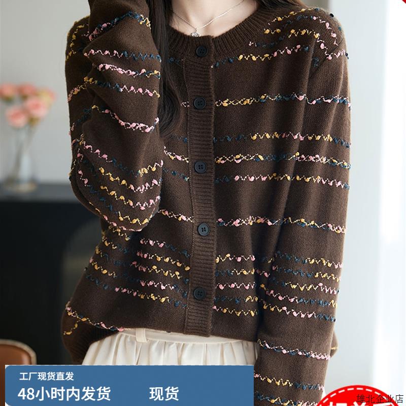 鄂尔多斯市秋季薄款圆领羊毛针织开衫女士毛衣短款外套显瘦外搭潮