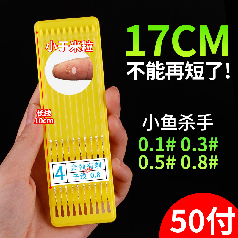超短款17cm金袖海夕小鱼钩成品子线双钩有刺无刺袖钩野钓鲫鱼短线