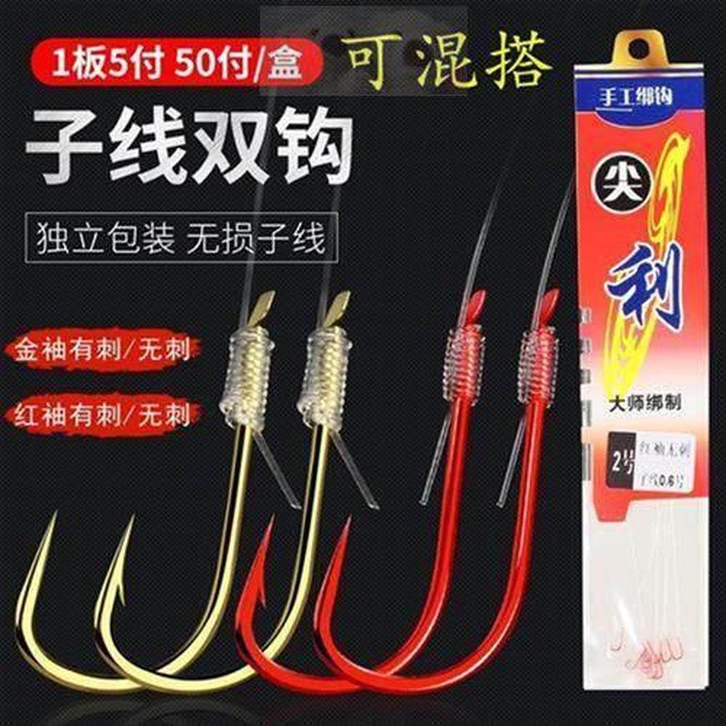 钓鱼王金袖无结子线双钩鱼钩有刺无刺袖钩成品绑好防缠绕线鲫鱼钩