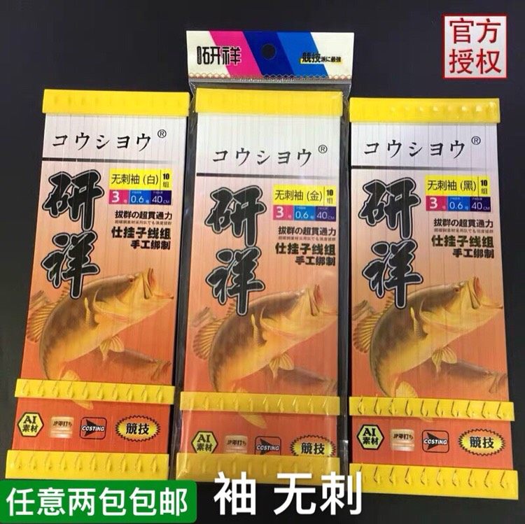 散装平打金袖鱼钩有倒刺无刺袖钩绑好成品子线双钩短正品进口材质
