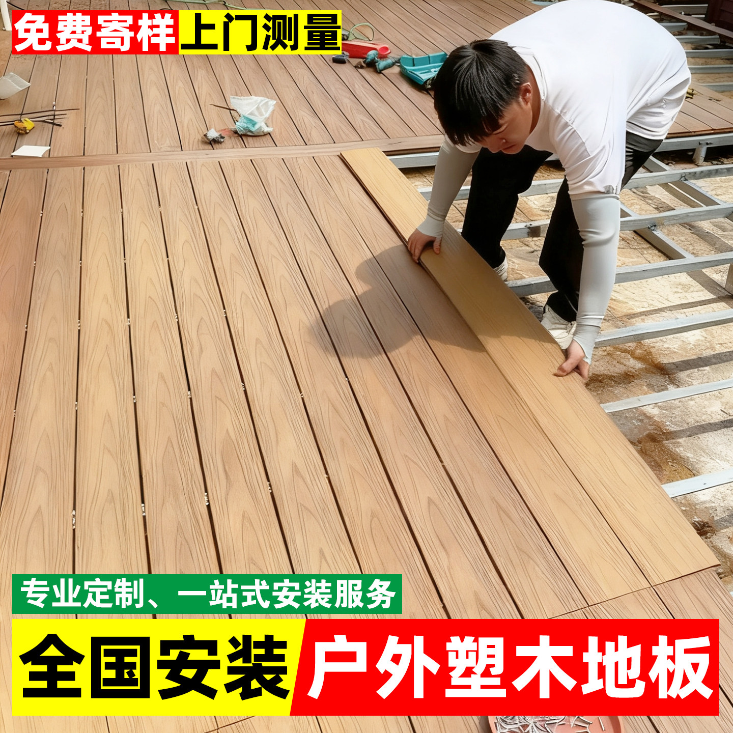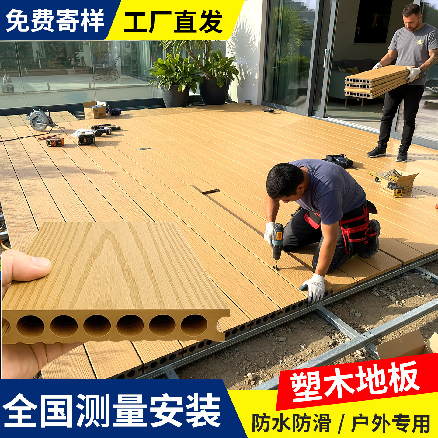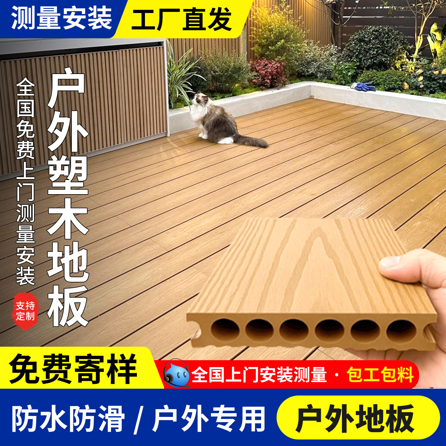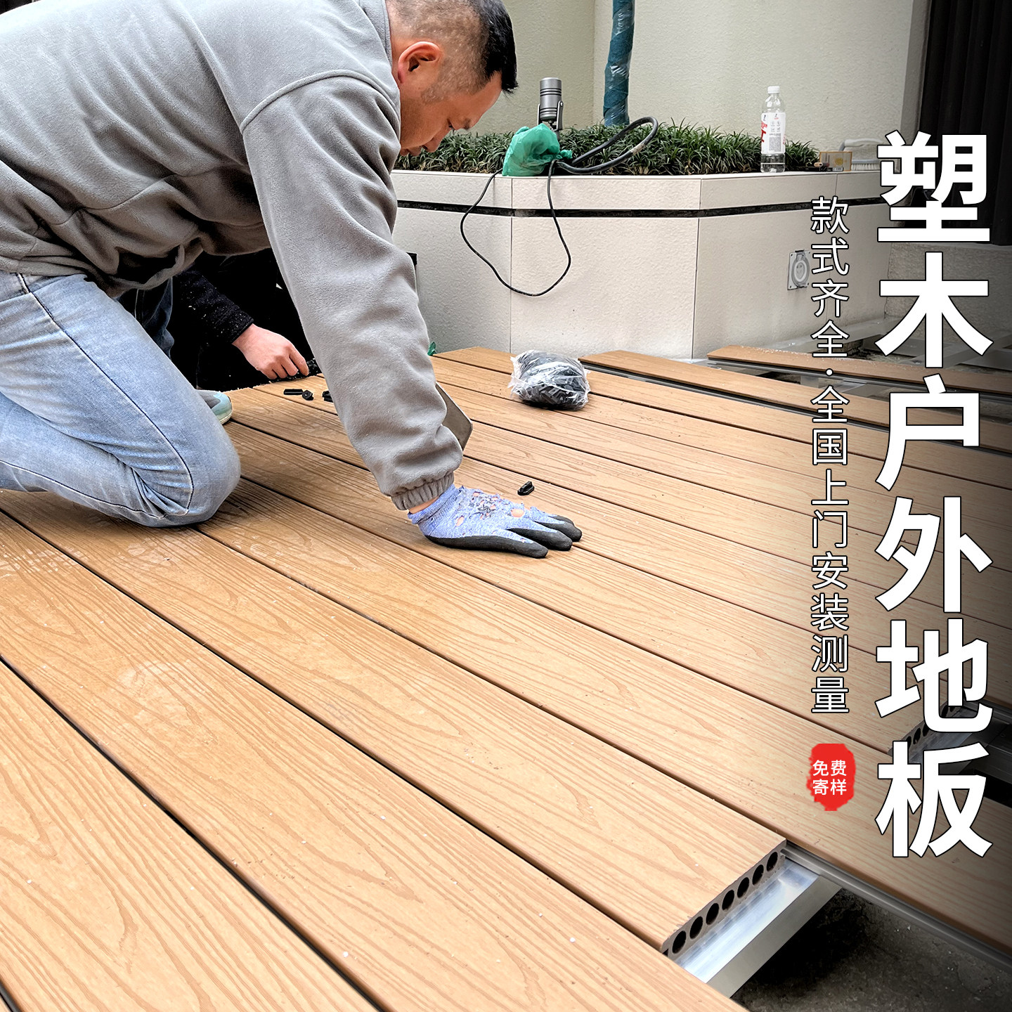 户外地板花园露台自铺防腐木塑室外庭院地面铺设共挤塑木阳台改造