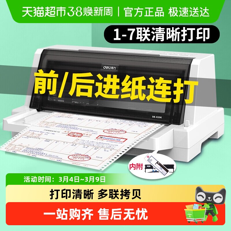 得力针式打印机615Kii开增值税票税控专用票据发票打印机三联纸出货单送货单出库单收据小型平推式针孔打印机