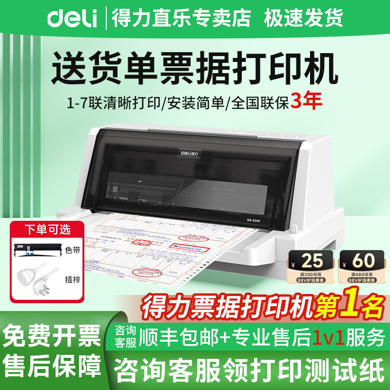 得力针式打印机615KII开增值税票税控专用票据发票打印机三联纸出货单送货单出库单收据小型平推式针孔打印机