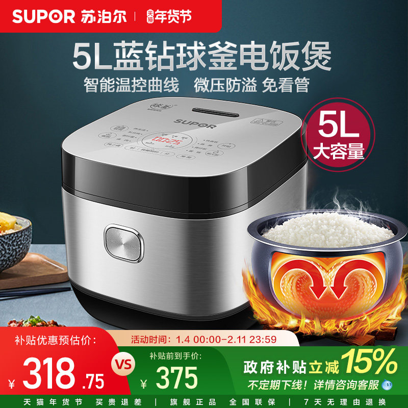 苏泊尔电饭煲政府补贴5L大容量多功能电饭锅柴火饭球釜煮饭锅正品