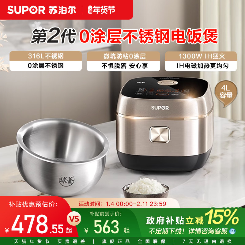 苏泊尔电饭煲家用0涂层多功能电饭锅3-4人官方旗舰正品316L内胆