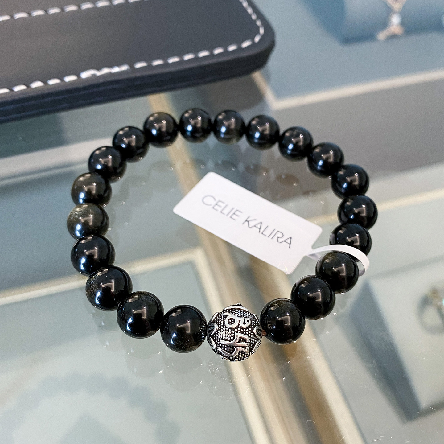 官方正品CELIE KALIRA黑曜石S925银六字真言男女手串转运情侣手链