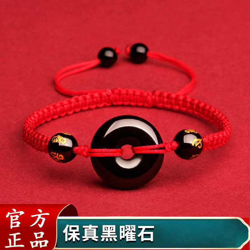 天然黑曜石编织红绳手链男女本命年平安扣手绳饰品2026马年吉祥物