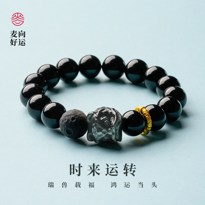 天然金曜石手串男女官方正品黑曜石马年本命年貔貅本命佛招财手链