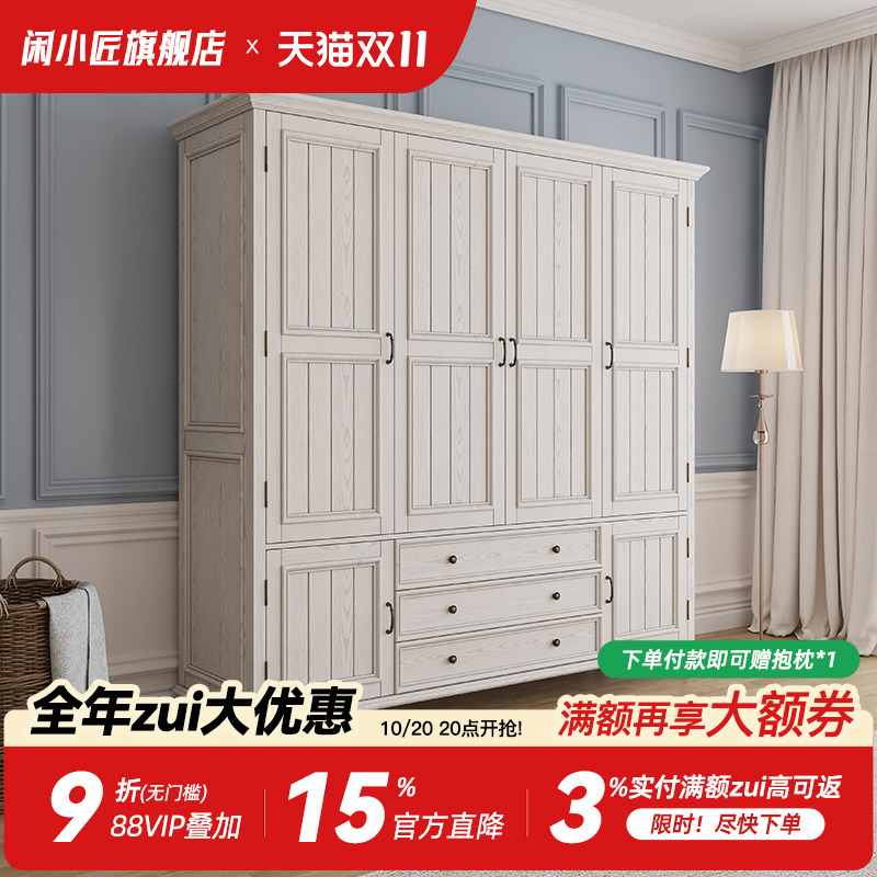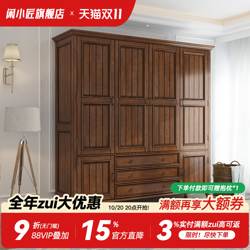 4I乡村美式衣柜实木4门复古现代简约四门大衣橱家用卧室家具经济