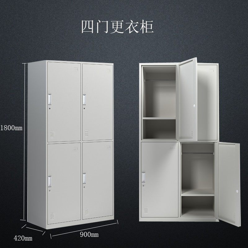 郑州四门铁皮更衣柜家用印花柜4门收纳阳台办公室员工储物柜包邮