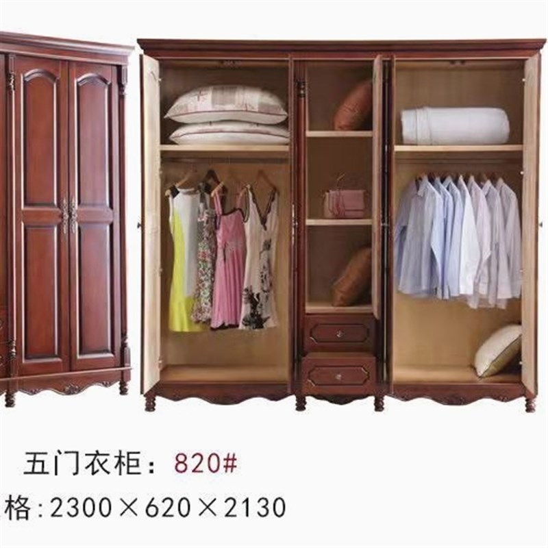 实木衣柜家用卧室储物柜4门美式双开柜简约收纳柜整体5门组合衣橱