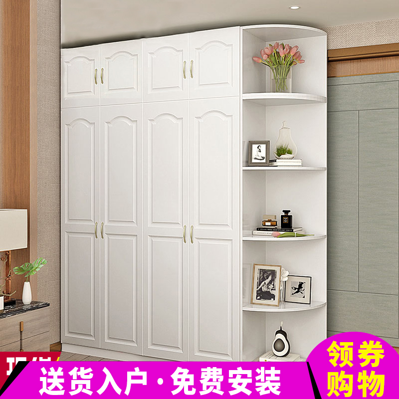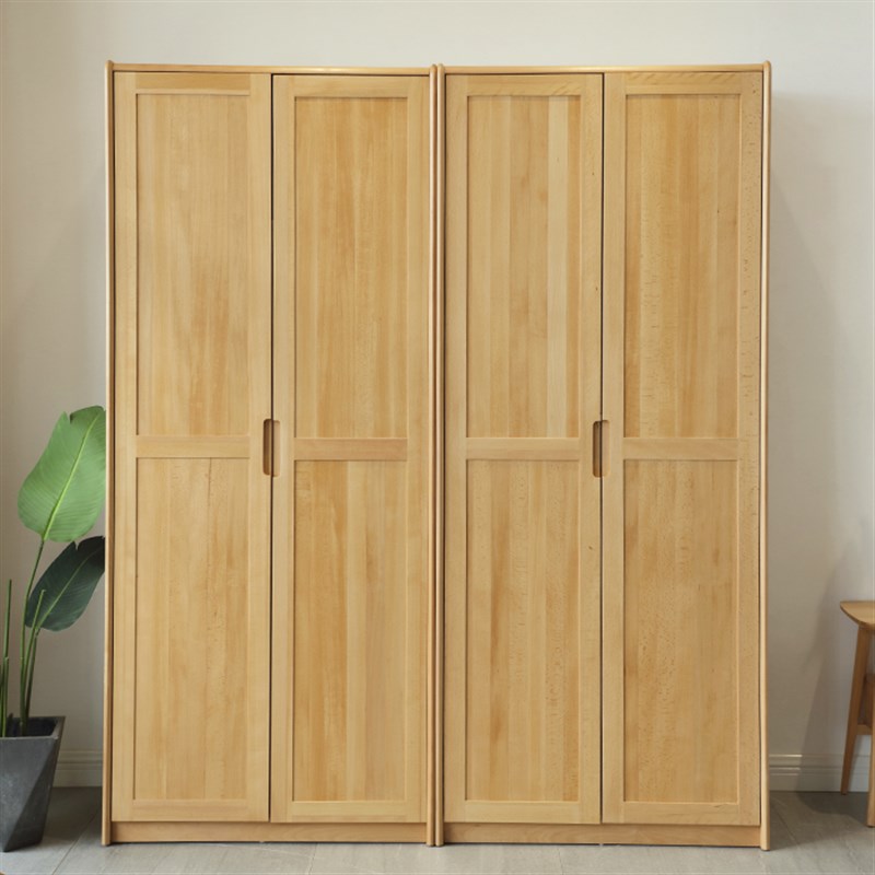 美式实木衣柜卧室收纳柜4门家用定制对开门靠墙衣橱柜简约衣帽间