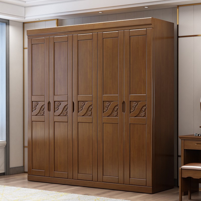 实木衣柜3门4门5门6门衣柜衣橱卧室衣柜大容量储物柜现代中式衣柜