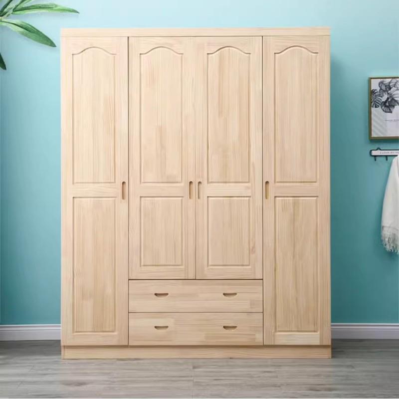 中式儿童成人实木衣橱带抽屉4门1.8米大衣柜大板松木环保木质卧室