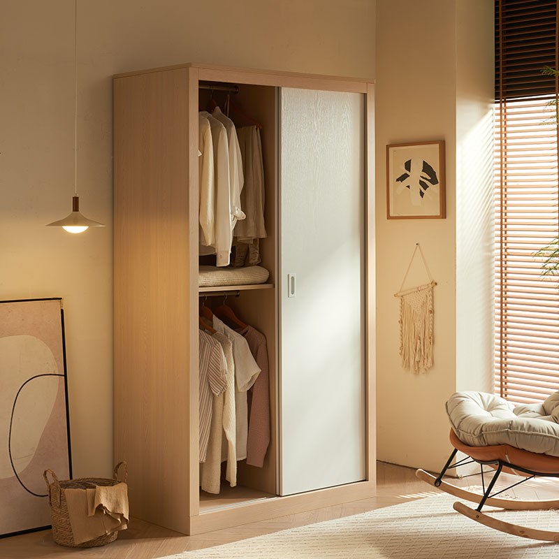 移门衣柜1.1米实木趟门推拉两门 原木色衣橱储物柜小户型1米4双门