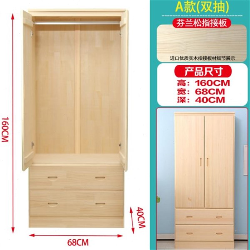 全实木衣柜松木两门小户型定制2门4衣橱卧室储物柜子简易儿童原木
