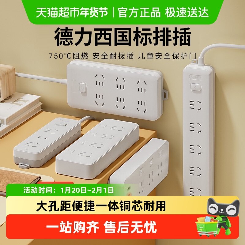德力西官方插座插排插线板总开关接线板拖线板多功能排插插板宿舍