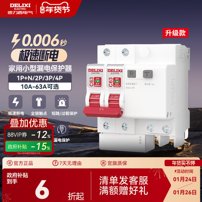 德力西漏电保护器官方店空气开关断路器空开漏保电闸家用空调配电