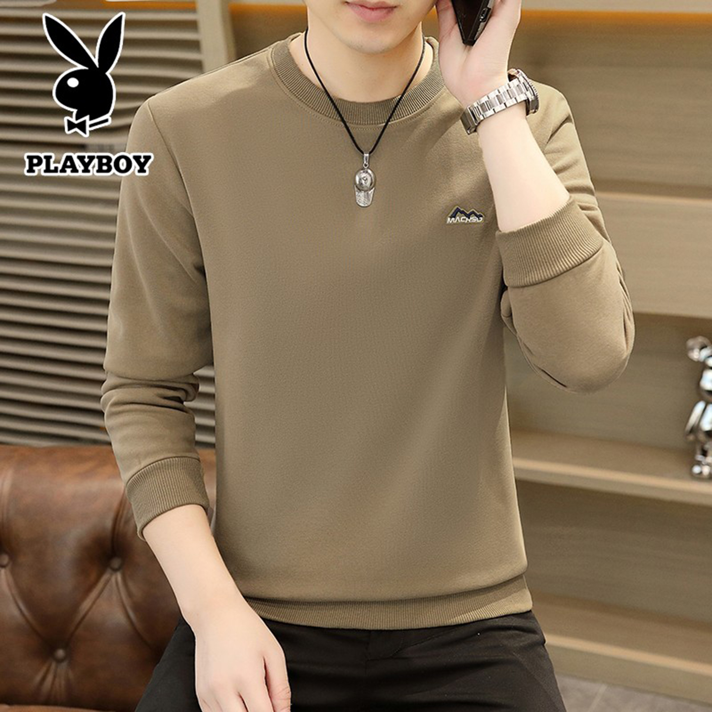 花花公子卫衣春秋季新款男士休闲打底衫时尚百搭休闲圆领长袖T恤