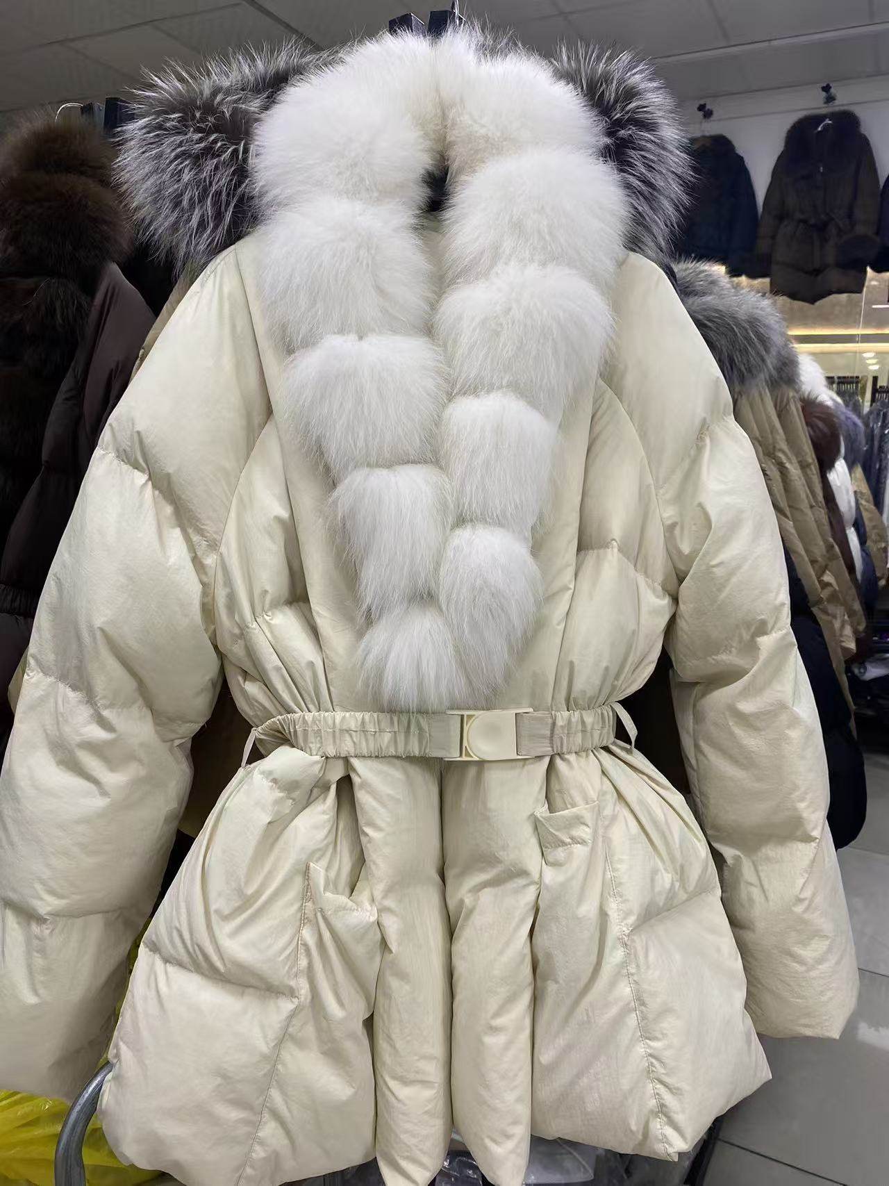2025年冬季欧货加厚收腰显瘦90白鸭绒短款狐狸大毛领羽绒服外套女