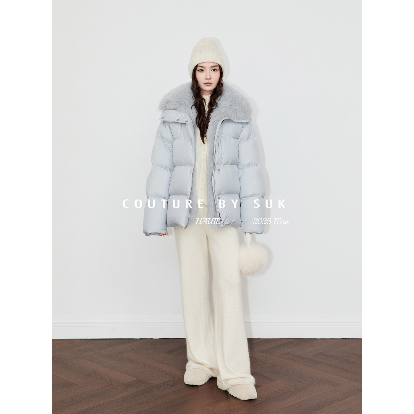 SUK 北海道初雪! 冬日氛围感狐狸毛大毛领拼接羽绒服90白鹅绒