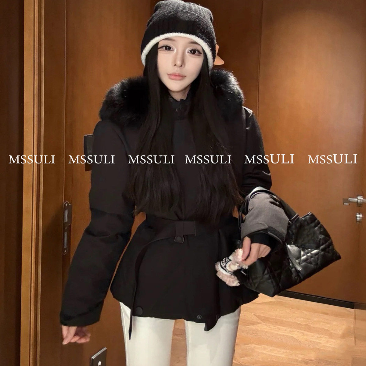 顶配版!25SS鹅鹅家 滑雪系列白徽章 显瘦小蛮腰狐狸大毛领羽绒服