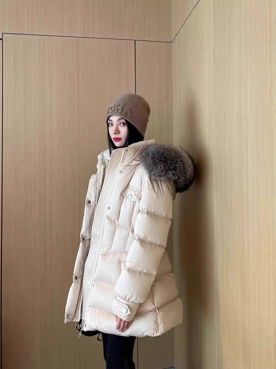 小景家同款 保暖纤腰并存 高密超细旦95白鹅绒狐狸大毛领羽绒服