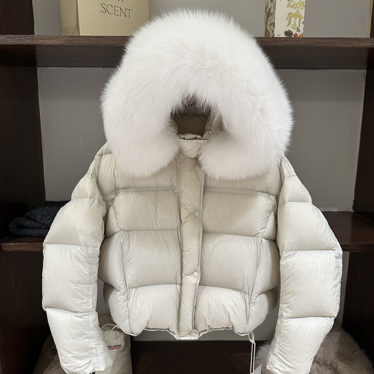 欧货2025冬装大狐狸毛领皮草羽绒服女短款小个子白鹅绒皮草外套潮